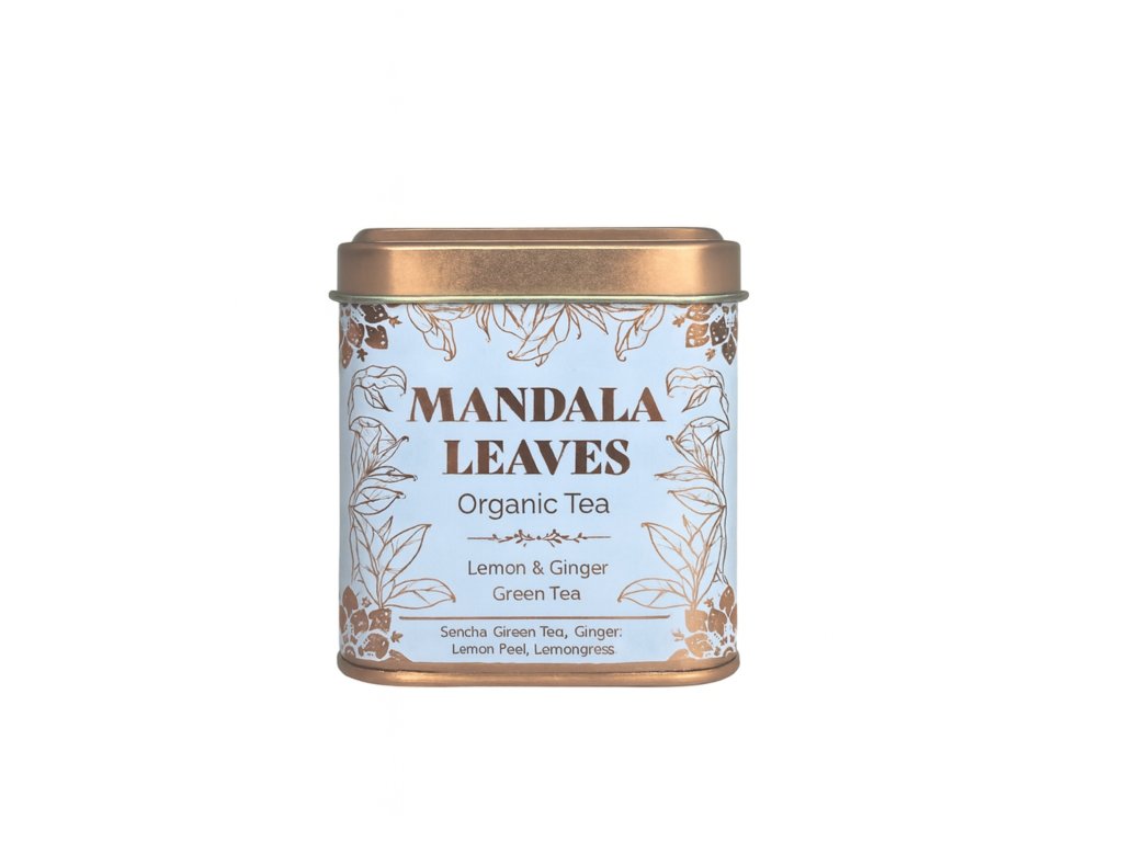 Organický zázvorovo‑citrónový zelený čaj v elegantnej dóze. Svieža povzbudzujúca chuť, 100 % natural formula od Mandala Leaves.