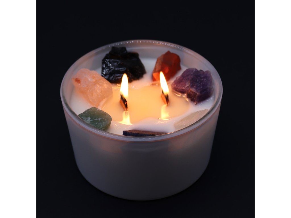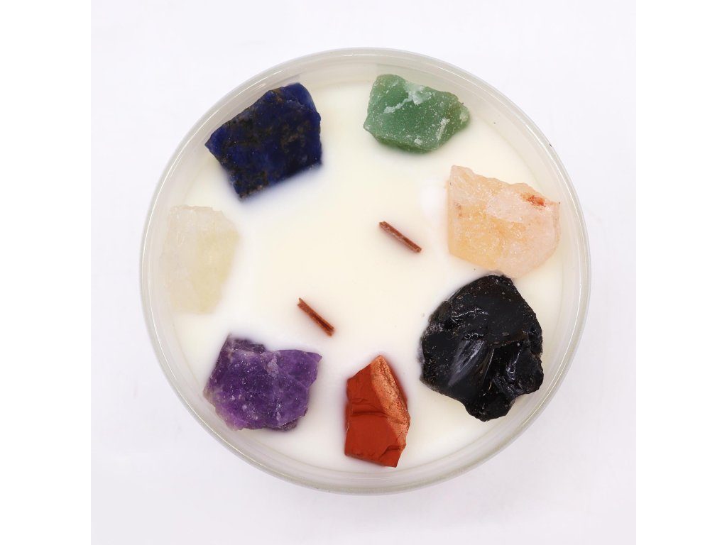 Každý drahý kameň v sviečke symbolizuje jednu zo siedmich čakier a je starostlivo vybraný pre svoje energetické vlastnosti. Pri horení sviečky sa uvoľňuje jemné svetlo a príjemná atmosféra, ktorá napomáha uvoľneniu, sústredeniu a vnútornej harmónii.