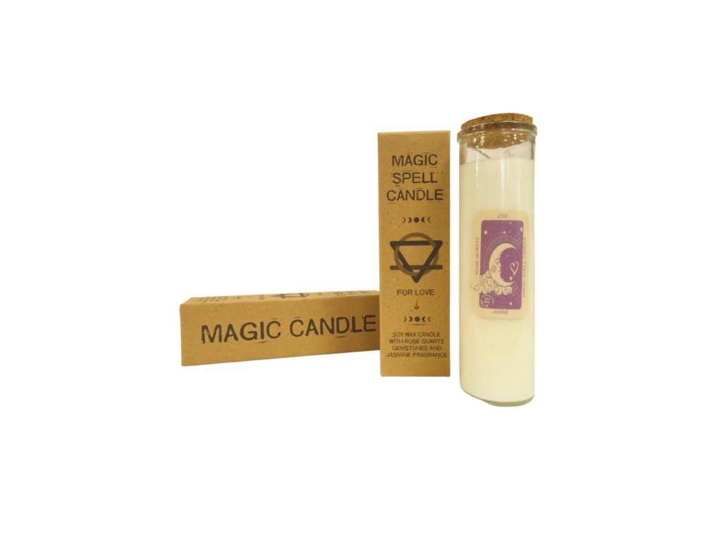 Čarovná sviečka – Láska je určená na podporu lásky, harmónie a citovej rovnováhy. Ideálna na rituály, afirmácie a vytvorenie romantickej atmosféry.