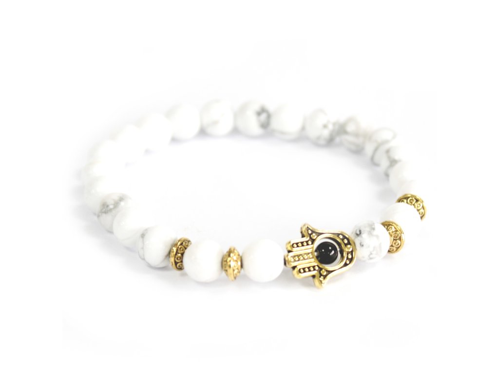 Náramok-Zlatá Hamsa /Biely Kameň