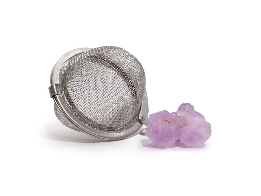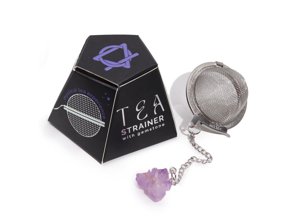 Jemné kovové sitko spoľahlivo zachytí čajové lístky a umožní im plne rozvinúť chuť aj arómu. Retiazku zdobí prírodný kameň ametyst – kameň pokoja, intuície a vnútornej harmónie. Je obľúbený pre svoje upokojujúce vlastnosti a schopnosť podporovať relaxáciu a sústredenie.